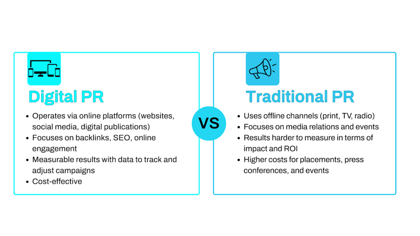 - Compared to traditional PR efforts, which often involve high costs for print media and events, Digital PR is more affordable. Campaigns can be run with a smaller budget, and the ability to measure results ensures you’re getting the best return on investment.
