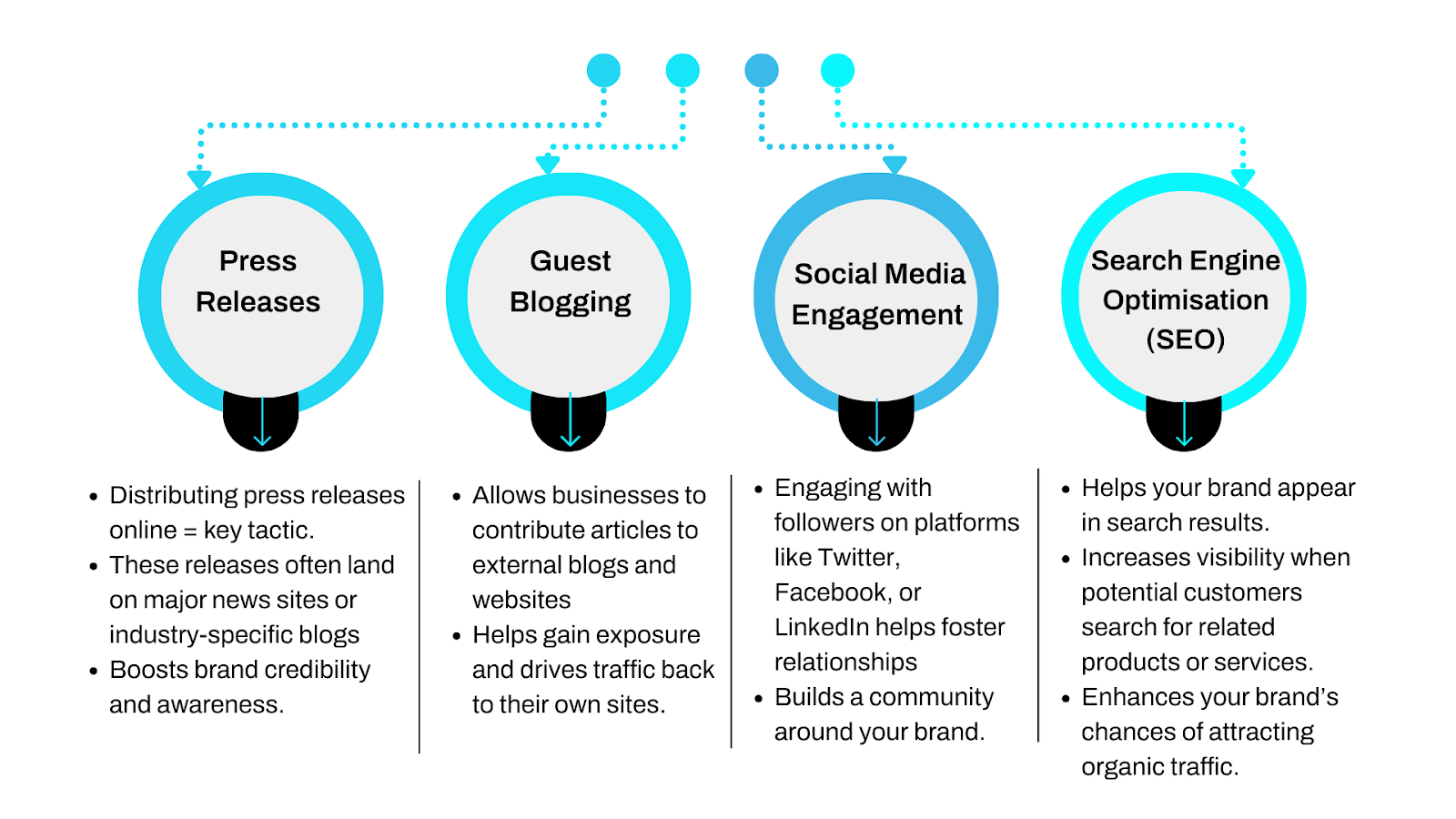 Digital PR works by combining traditional PR tactics with digital tools to enhance brand visibility and credibility in the online space. The process typically begins with identifying your target audience and the platforms they frequent. From there, you create relevant content and collaborate with influencers and media outlets to spread the word about your brand.